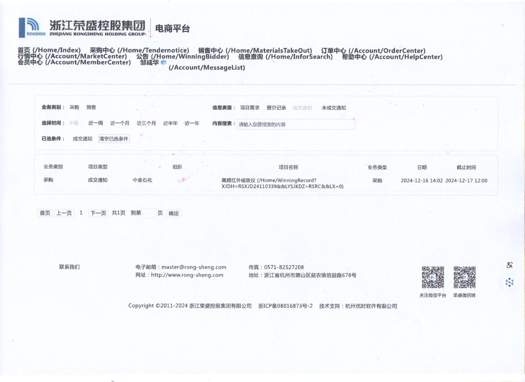 熱烈祝賀科果儀器(高頻紅外碳硫分析儀)二次中標(biāo)榮盛控股集團(tuán)